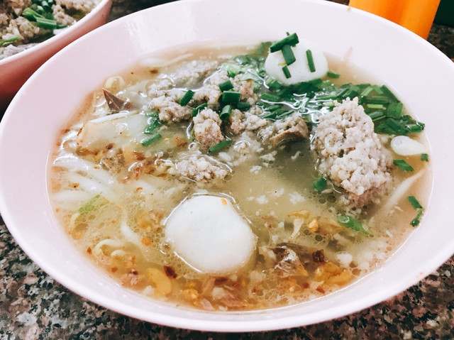 私は汁なしトムヤム、春雨、豚ひき肉つみれ、Sサイズで60バーツ!