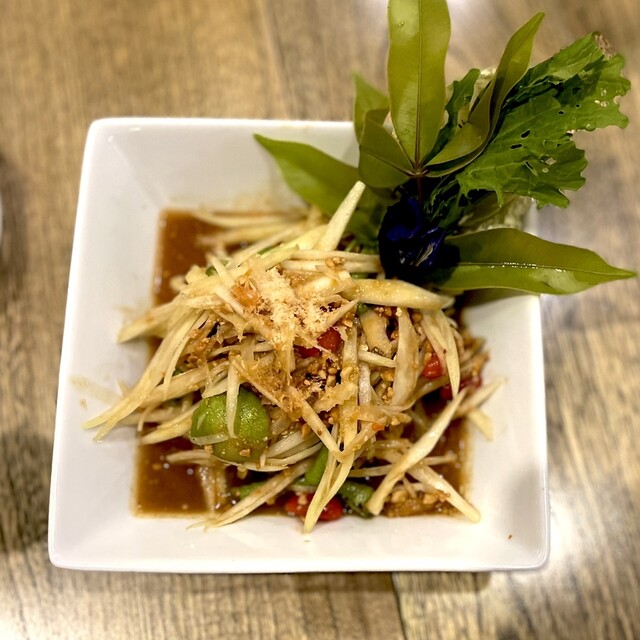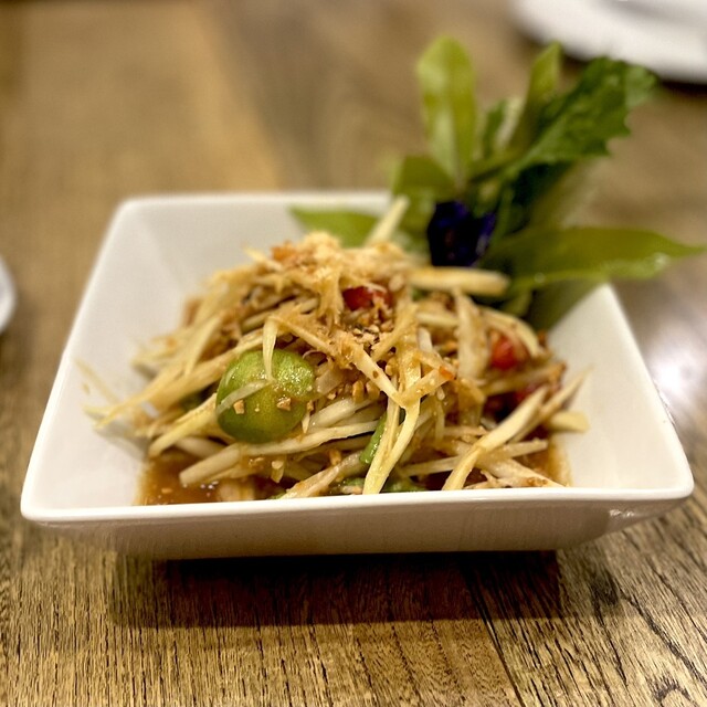 タイの定番サラダ。シンプルな味で辛さと酸っぱさの共存。何度か食べているうちに割とやめられなくなってくる味ですが、初めてのときは少し酸っぱさがきになったかも。