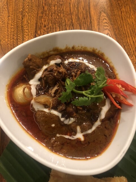 タイで食べたかったメニューの一つ、マッサマンカレー目当てに訪問しました。旅行雑誌でコチラのマッサマンカレーが美味しいという記事を見てです。ただ、コチラのお店は駐在員が住んでいる高級住宅街エリアにあって、マッサマンカレー以外にもメニューは豊富、大衆店よりはワンランク上のレベルのお店の様です。駐車場もあって、敷地も店内も広く、外国人も多かったです。