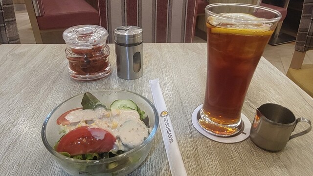勿論お野菜も忘れませぬ。飲み物はレモンティー。