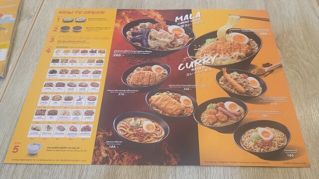 Curry Ramen with Pork Cutlet & Cheese290THB, Rice20THB, A SET80THB(VAT, サ料別)