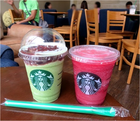 • Starbucks  - 2014/5フラペチーノ(左レッドビーングリーンティー165バーツ。