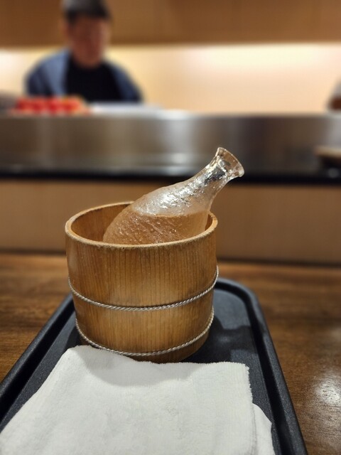 お好みで好きな寿司をカウンターでオーダーし、日本酒をたしなむ。