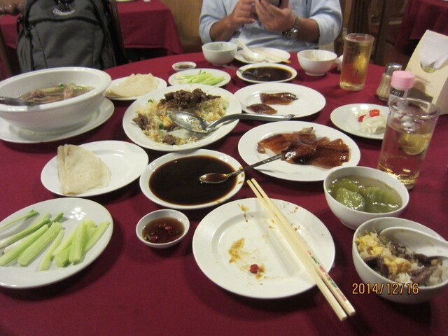 北京ダックが上手い。北京ダックの中の肉を使った料理を二品か三品?選べる