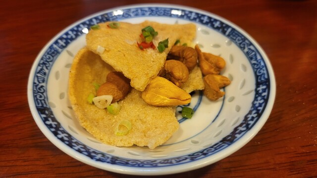 カレー掛け麺300THB, ライス80THB, 青椒肉絲270THB, 餃子150THB, 水餃子150THB, 野菜サラダ150THB, シンハービール大瓶130THB