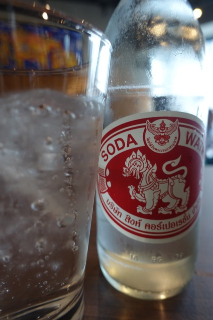 ランチセットを注文。ハンバーガーにサイド、ソフトドリンクがついて800円程度です。飲み物の選択肢は多くなく、私は控えめにシンハの炭酸水を注文。