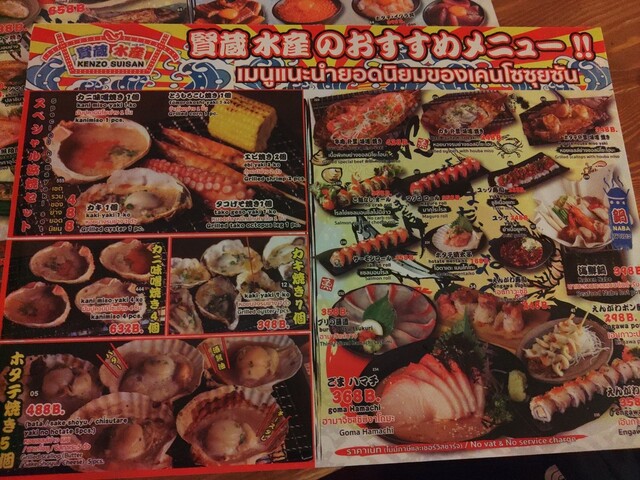 の看板が目立ち、炉端焼きが美味しそうだったので入ってみました。おすすめメニューからカキ焼きとごまハマチ、その他しらすを注文。カキはタイでも生食で食べられる程メジャーで、少々小ぶりでしたが味は濃厚で美味しいです。ごまハマチは・・ごまだれかと思いきや、ピーナッツ風味のタレで、、、でもハマチは身が分厚く美味なだけにもったいない。しらすはしらすでした。