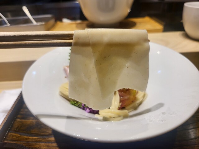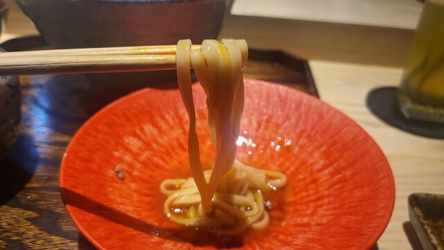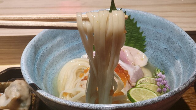 昆布水に浸した麺は牡蠣つけ汁へ。