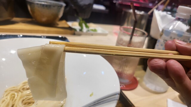 魚介だしに鶏清湯の旨味が強く後味はスッキリで(゚д゚)メチャウマー更にトリュフオイルで香り付け。