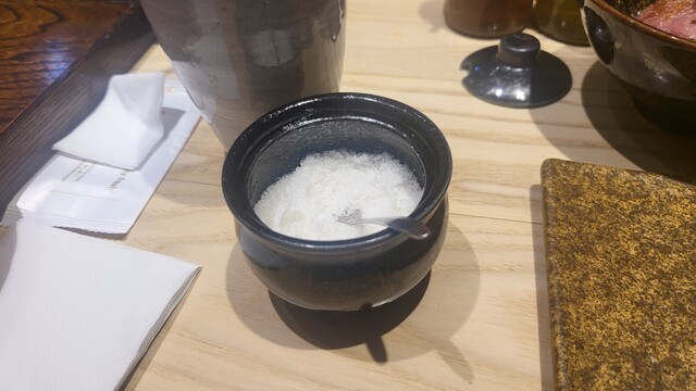 塩・山葵・柚子胡椒で楽しんでから生卵・塩出汁・醤油出汁へ。やっぱ塩が好き♥