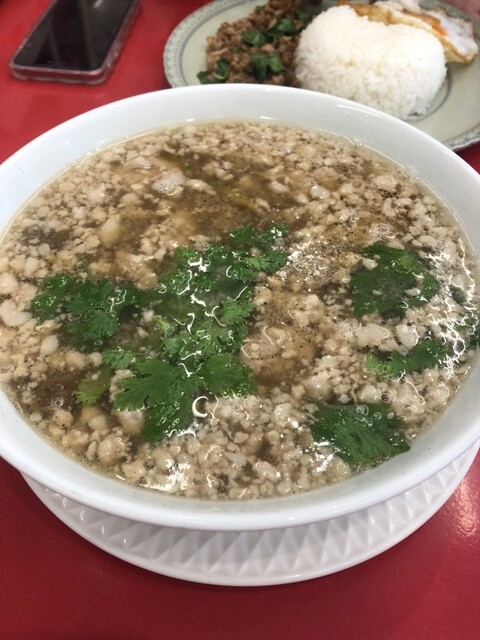 ガパオライスは肉がしっかり炒められていて、味もしっかり染みて、辛さはちょい辛と聞いて2にしたけど結構な辛さです。でもかなり美味しいです。日本で食べるガパオライスとは一味違うと思いました。タイ料理は日本でも充分美味しい店が多いので、現地でしかと言うのはそれほどなかったけど、コチラは是非現地でこそ食べたいお店の一つです。なお、梅スープは確かにこれも日本では珍しく美味しかったけど、量が多すぎて…二人でも多いぐらいでした。