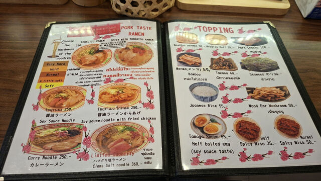 とんこつラーメン250THB、SHINGHA SODA35THB