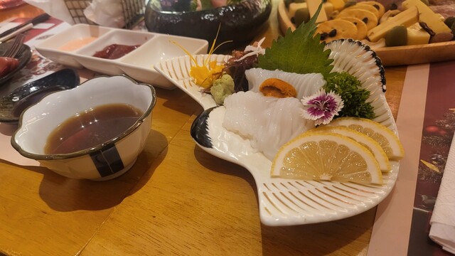 刺し盛り、ウニイカソーメン、生ハム&チーズ、フレンチフライ