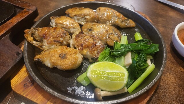 もちベーコン、ねぎ焼き、カキ鉄板焼き。