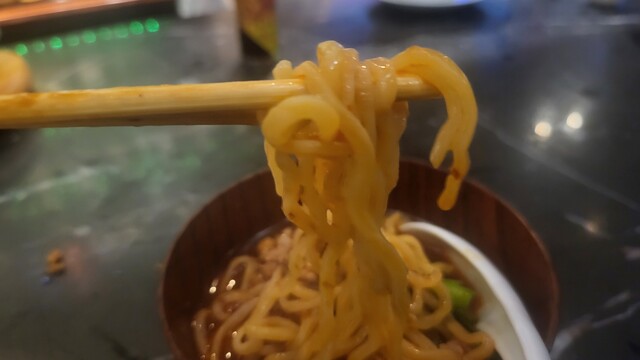 醤油味のスープは中々の辛さで私が食べられる限界に近い辛さ️