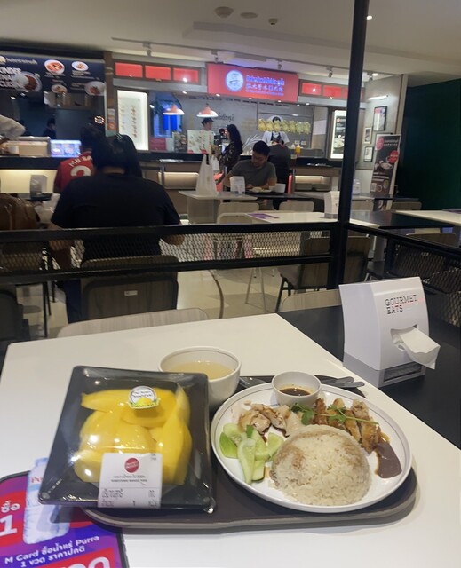 本当は最終日にピンクのカオマンガイ本店で食べたかった。しかし、最寄り駅から徒歩で10分かかるので汗をかいてしまう。さすがに汗をかいた体でフライトしたくない。ましてや早朝羽田空港に着いて、そのまま出社である。そのため、この空調の効いたショッピングモール内で食べられることに、喜びを感じる。