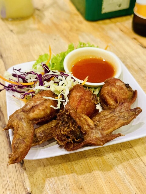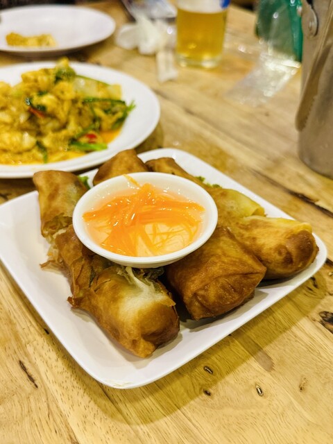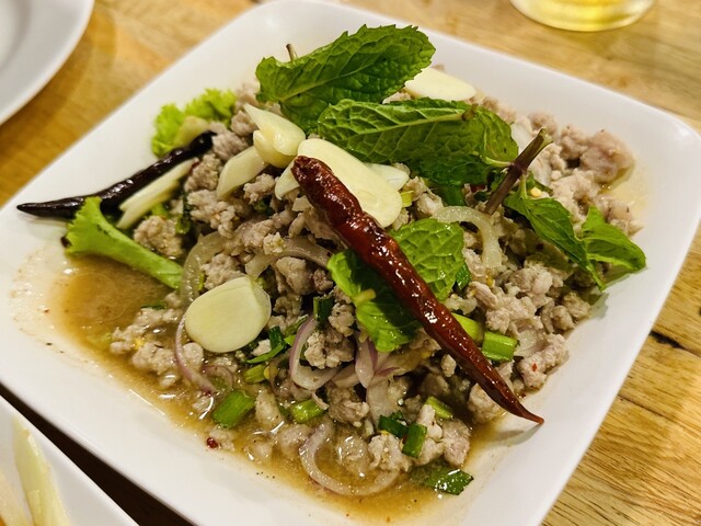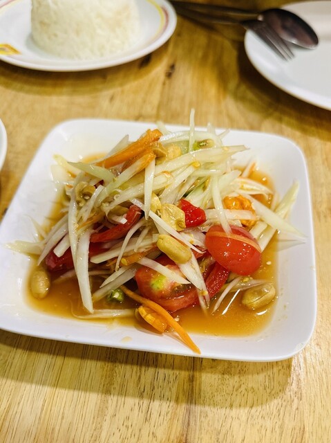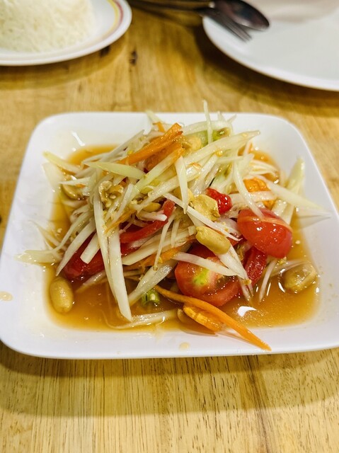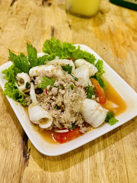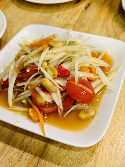 コーンのソムタムは、コーンの甘さがあるので、定番の辛いソムタムタイよりも食べやすく美味しい!辛いのが苦手でも大丈夫♡女性人気No.1でしょう〜シャキシャキ食感もたまらない!ココは、日本人にも食べやすい味付けが多いのが人気の秘密かもしれません〜他にも、プーパッポンカリー、ホイトート(牡蠣料理)にパッタイやヤムーセン、イサーンソーセージ、コームーヤン(豚トロ)、チムチュム鍋、トムヤムクンなど、定番からディープなものまで揃っています。
