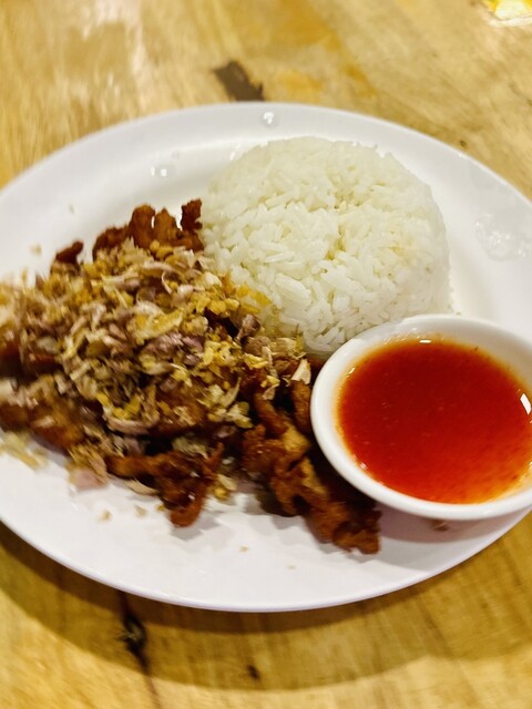 サバイジャイの代名詞といえば、もちろんガイヤーン(鶏の丸焼き)!マストオーダー!カリッとジューシーな「ガイヤーン」は、特別なハーブで漬け込まれた鶏肉を、絶妙な火加減でじっくりと焼き上げています!お肉は柔らかくてジューシー、焼き具合も最高!カリカリのガーリックが添えられていて、もう香ばしさがたまりません!タレも美味しいのですが、何もつけずにそのまま食べても旨みがしっかりあって美味しいです。