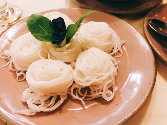 蟹の身をイエローカレーで炒めてあるんだけど、これに、ジャスミンライスじゃなくて、素麺をもらって絡めて食べたらこれまた絶品!!
