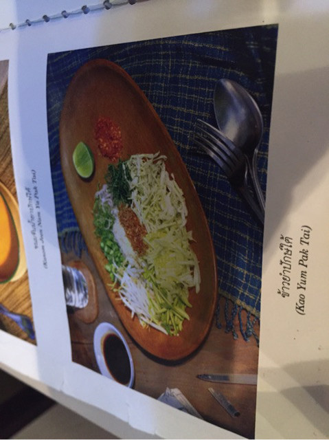 <クーヤムパクタイ>お米のサラダ。これにオイスターソースとライム、唐辛子を入れてグチャグチャにかき混ぜて食べるんです!