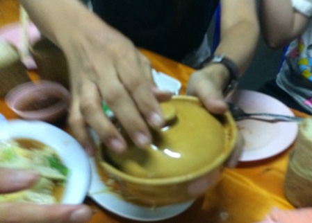 そして・・・店員さんが何やら、鍋の蓋を押さえながらやってきましたよ。