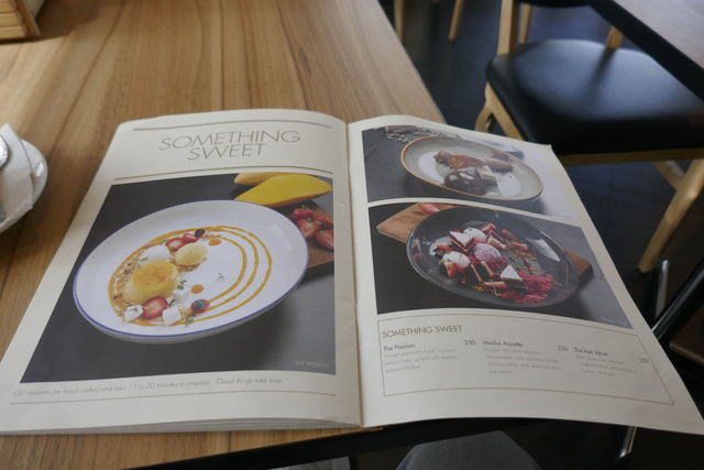 早速、オシャレなカタログのようなメニュー表を見ていくと、シェフのおすすめメニュー、コーヒー&紅茶メニュー、なお、コーヒーは100パーツ前後と高め!紅茶メニューも同様に100バーツ前後のようでした。