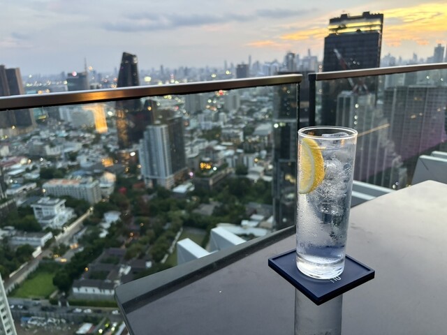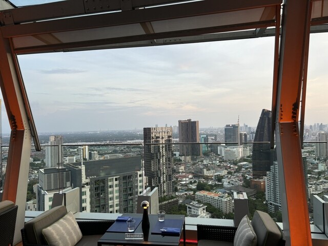そこから、更にエレベーターで49階へ上がると、バンコクの景色が一望できる場所、そうルーフトップバーの醍醐味とも言える場所の席を確保完了!