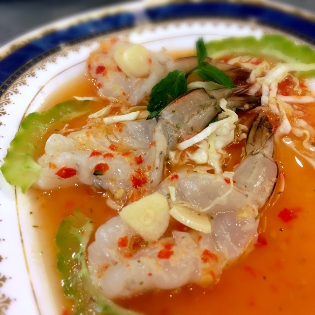 バンコクでは海老を生で食べることが多い。