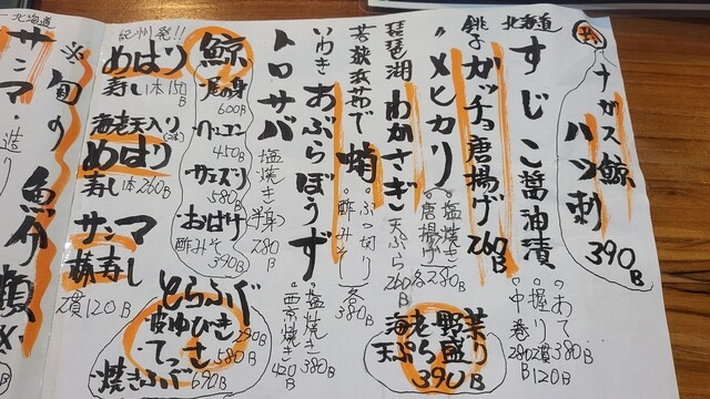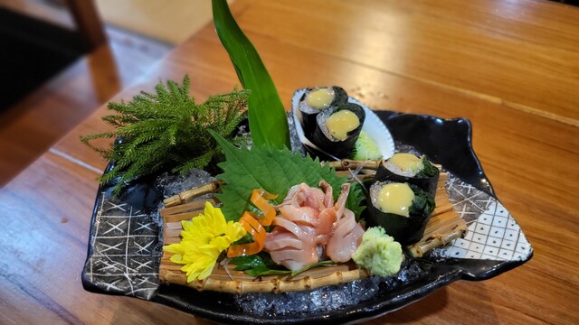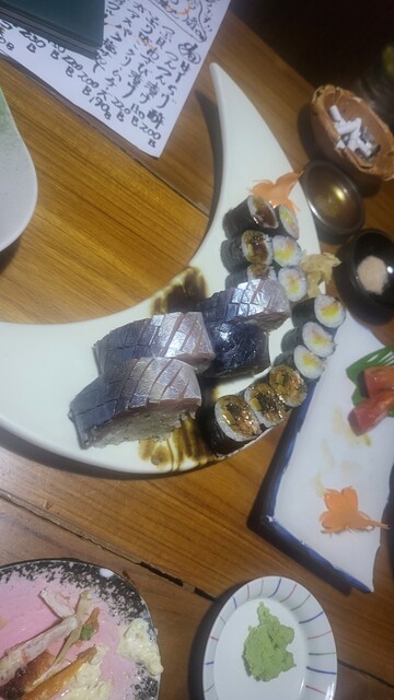 鮪赤身、鯵、縞鯵、鱧、鰹、烏賊、つぶ貝、帆立。