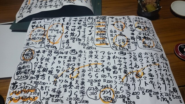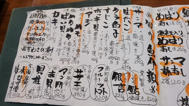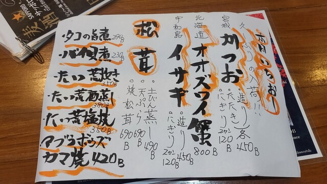 秋刀魚、鯵タタキ、太刀魚、アオリイカ。