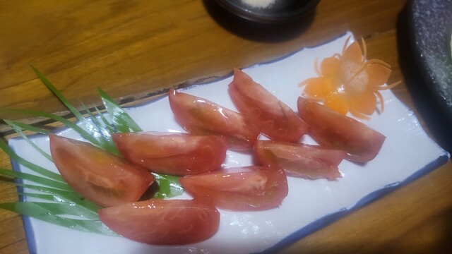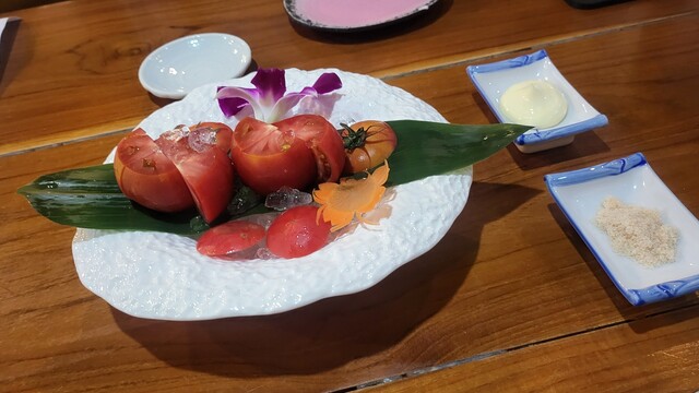 まずは三重のフルーツトマトに明石だこのぶつ切りウメェ!!