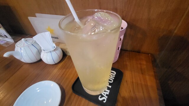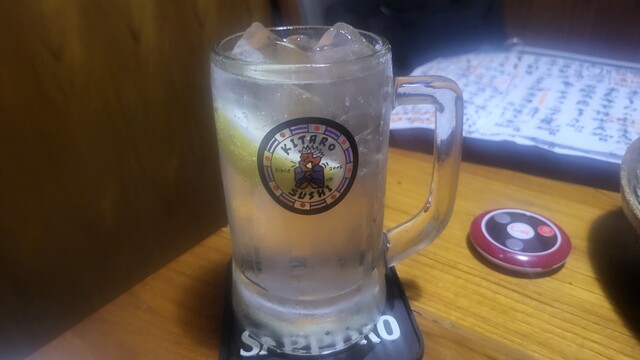 美味い魚が食べたくて「喜多郞寿司」へ。先ずはレモンサワー。