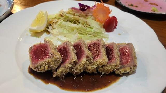 マグロレアカツは鮪赤身が上等でソースがまた秀逸。