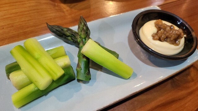 アスパラジューシー、鯵タタキは大蒜がポイントデラウマ♥️