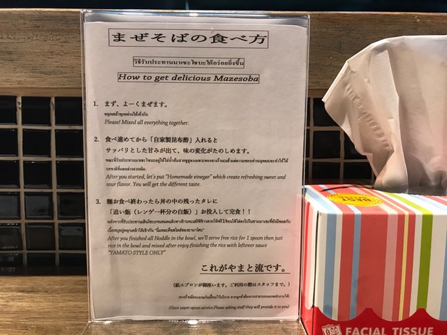 食べ方指南は英語、タイ語、日本語で。