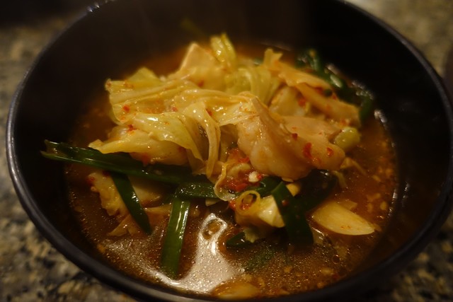 当店は紛うことなき焼肉屋なのですが、牛を1頭買いしているようで、そのホルモンも鮮度抜群で上質。その実力を確かめるためにモツ鍋を注文。