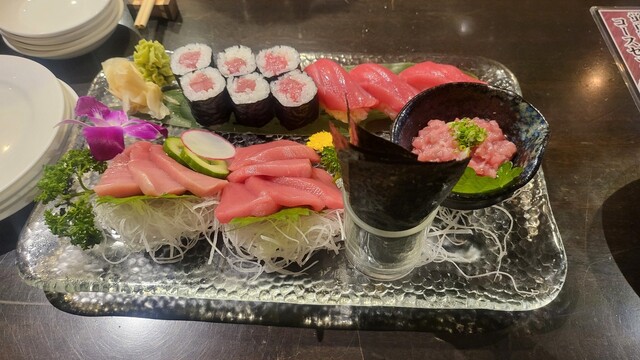 最初から鮪盛合わせに握り寿司、鉄火巻き、ネギトロに加えて