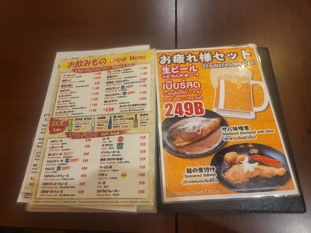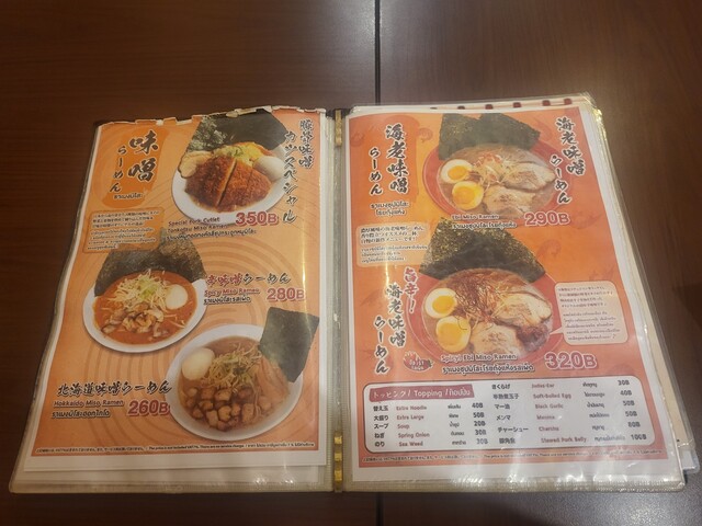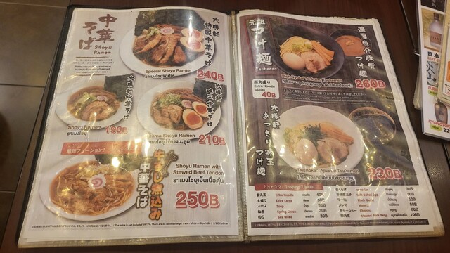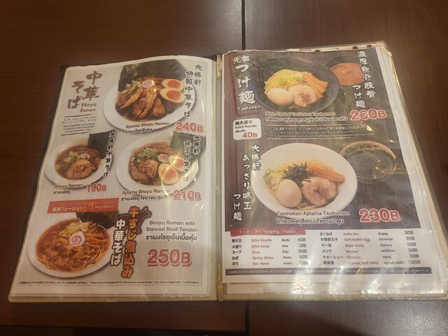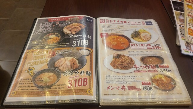 濃厚魚介豚骨つけ麺260THB、大勝軒あっさり味玉つけ麺230THB(VAT, サ料別)
