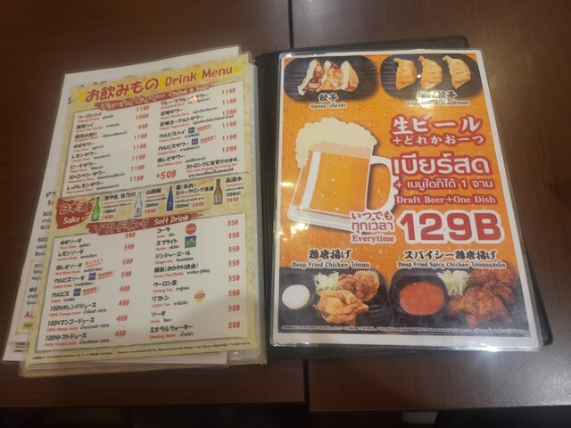 晩飯はトンローの「大勝軒」。東池袋系譜ですが兼居酒屋。日本語通じます。先ずは生ビールと鶏唐揚のセット129THBはなかなかお値打ち♥️チャーハン、肉ニラ炒め、塩ダレキャベツ。どれも安くてウマイ。そして〆らー、迷ったら両方頼む。同じ中太ストレート麺で量は少ない。あっさりは魚介強く、魚介豚骨は濃厚でどっちもウマイ濃厚は板海苔であっさりは刻み海苔。濃厚は割スープが最初からついてる。