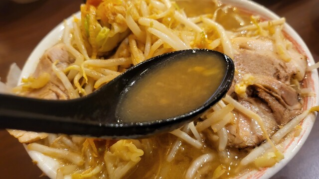 よせばよいのに角ふじスタミナラーメンの野菜倍、更に有料野菜も加え全マシ発注。