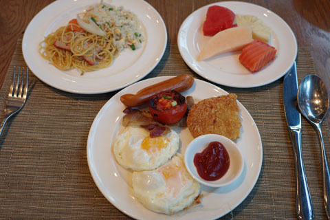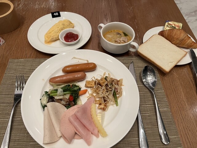 朝食に 広がる料理 口福の 満ちるひととき 値段相応 心も満たす