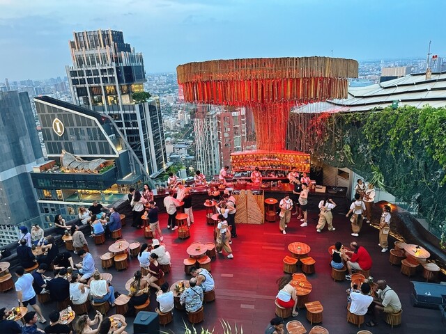 市内が一望できる眺望に、バンコクのEDMがガンガンかかり、気分は上々↑↑