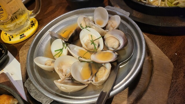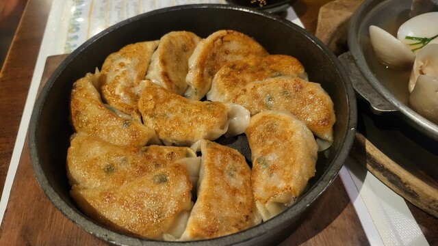 アテは餃子、蛤酒蒸し、ハツ&レバー串、イカ焼。