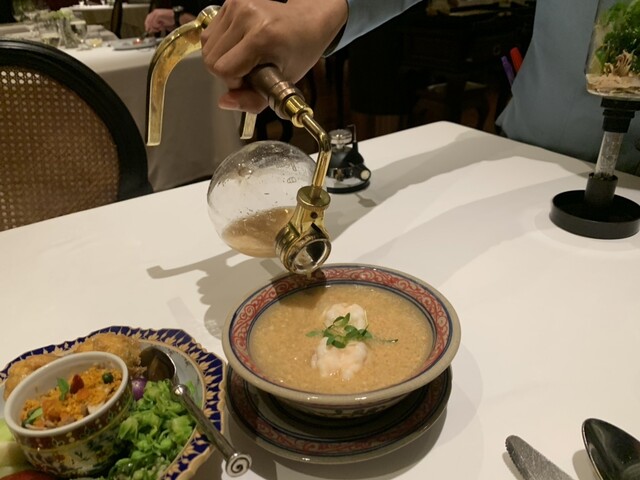 トンロー大使館街の2つ星タイ料理レストラン。スポンサーは現地大手ビールメーカーなので、立地内外装もいい感じです。土曜18時開店直後で、まだ他のお客さん来ておらずお料理サクサク食べるとサクサク出てきます。洗練されたハイエンドのタイ料理、視覚・味覚共に良いです、19時過ぎにテーブル埋まり始めます、チョイスメイン3点旨いんですけど、突如激辛、旨い土鍋ご飯お代わりしてなんとか完食、こりゃ欧米人はデフォルトムリですね笑笑