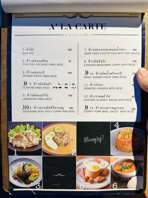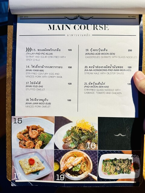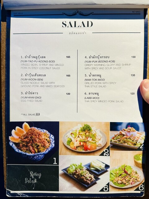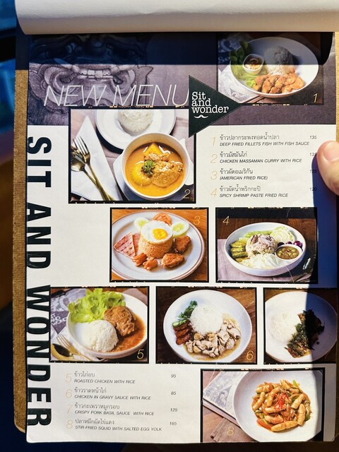 メニューは豊富!通常メニューもありますが「Sit and Wonder」といえば、組み合わせメニューがオススメらしい〜メインの食材を6種類から選び、調理方法を21種類から選べる!カジュアルさが良いですね〜頂いたのは「TOM-ZAB-KA-DOOK-MOO/豚骨スパイシースープ」「KOR-MOO-YANG-RAD-YUM-PRIK-SOD/豚首のグリルサラダ」「LABB-MOO/ひき肉のスパイシーサラダ」「もち米」とビールです。