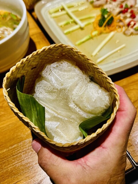 次に「豚骨スパイシースープ」も美味しい!トムヤムスープのような味わい!コレは流石に辛そうだったので、辛さを抑えての注文でしたが、それでも結構辛い!でも、気づいたら汗かきながら無心にスープを啜っていました!辛さを抑える効果もありますが「もち米」と合わせると美味しかったです。