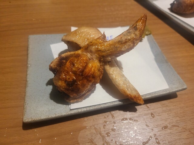 名物の骨付き鶏もも肉の肉汁焼きデラウマでした♥️ニンニク枝豆は辛かった。手羽餃子は餡のジューシーさが欲しいところ。豚平焼きはボリューミーで良いす。旬のフルーツとナッツマスカルポーネ和え等女子ウケメニューが多いです。土鍋ご飯は鮭イクラ。これもそして〆らーです。アテに酒はかなりよかったのでらーめんも食べちゃいます。魚介豚骨、醤油、辛味噌の三択なので魚介豚骨を発注。白濁スープは殆ど豚骨味です。麺は細ストレート麺。TPはチャーシュー、ネギ、メンマ、ノリにしっかりした醤油味の味玉。