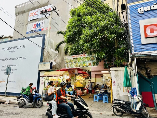 バンコク・トンローの屋台村は「BTSトンロー駅」の目の前、スクンビット・ソイ38沿いのコンドミニアム1階にあります。