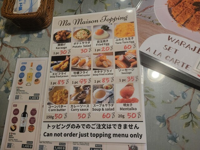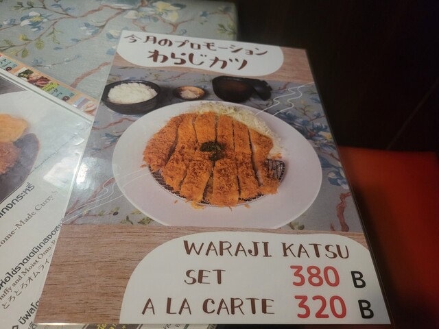 WARAJIKATSU SET380THB, POTATO SALAD 30THB, CARRY SAUCE 50THB(VAT, サ料別)