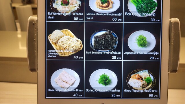 Yume Shio Ramen ver.1 580THB Mixed Toppings 98THB, Ajitama OrganicEgg 40THB(VAT, サ料別)